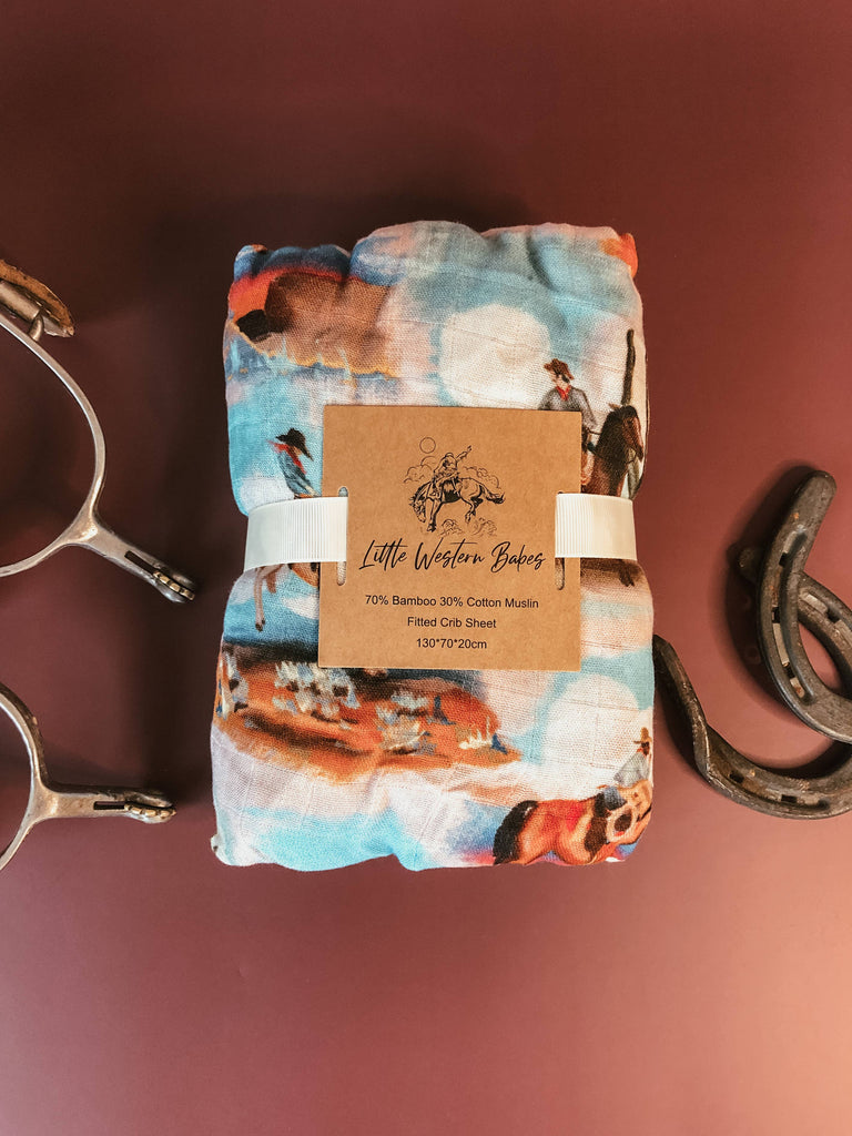 Legends of the Old West cowboy Bamboo Muslin Crib Sheet