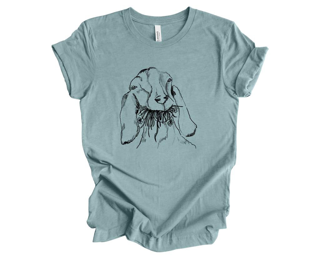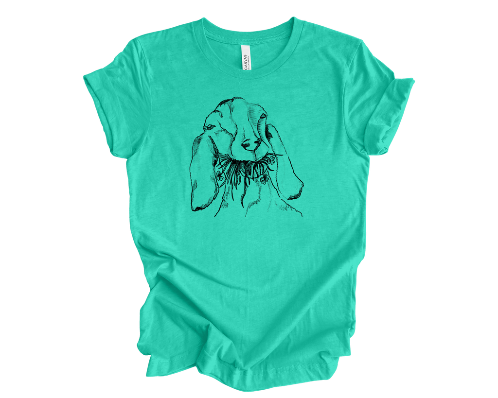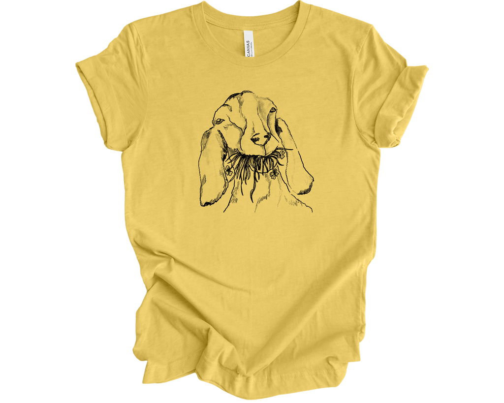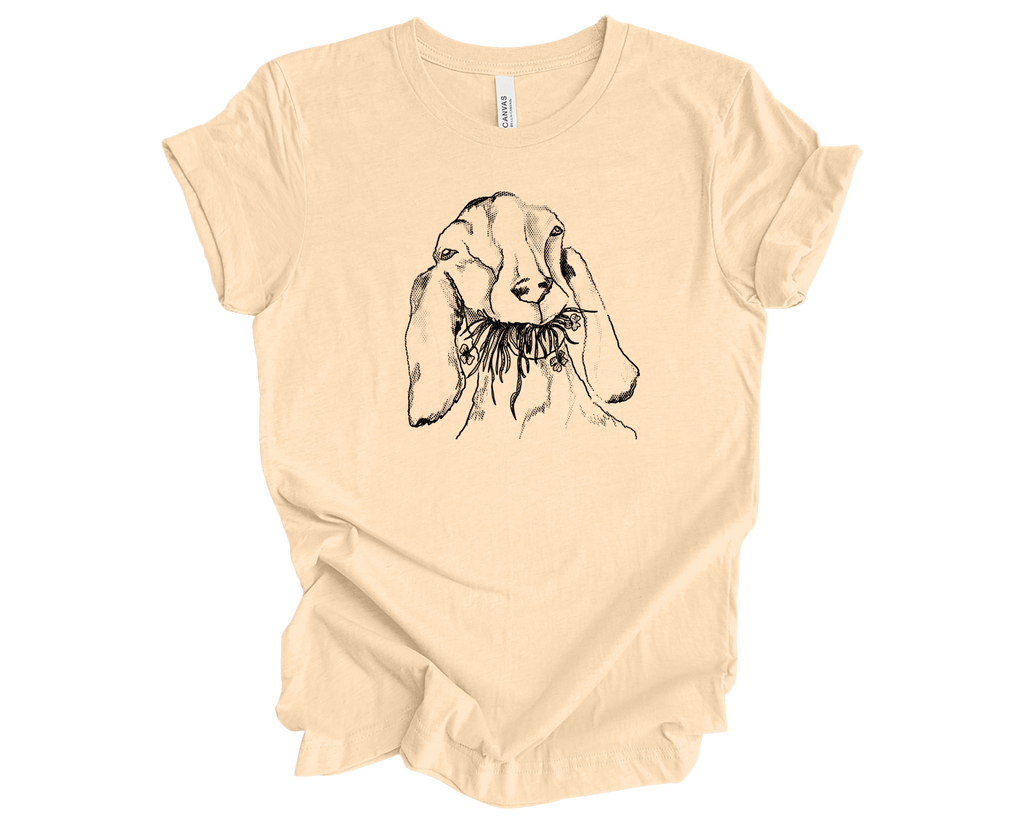 One-of-a-kind custom goat tee, designed for those who appreciate uniqueness and comfort. This soft, cozy t-shirt features a hand-drawn illustration of a goat, capturing its playful spirit and charm. The design is versatile and can be printed on any lighter-colored tee, allowing you to choose your favorite brand and style. Whether you're lounging at home or out with friends, this goat tee adds a touch of whimsy to your wardrobe. If you're interested in creating your own custom color , just send us a message, and we'll help you bring your vision to life!